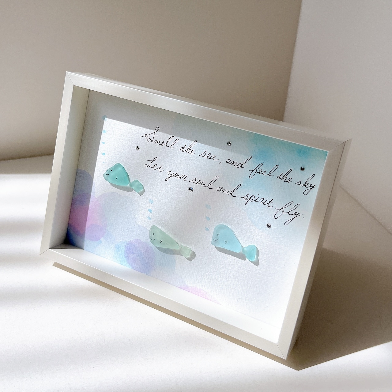 シーグラスと心に響く言葉のアート。
