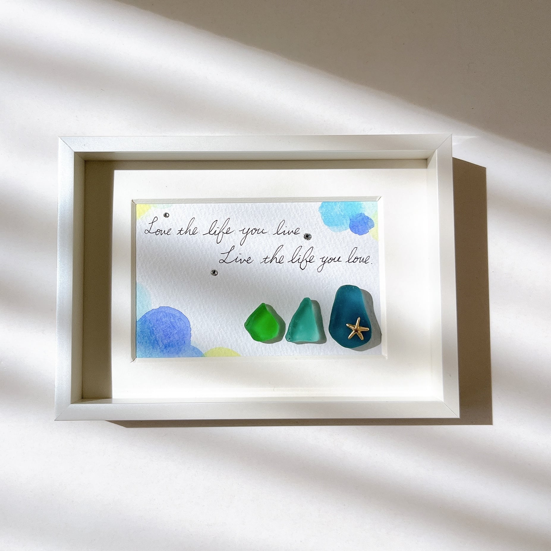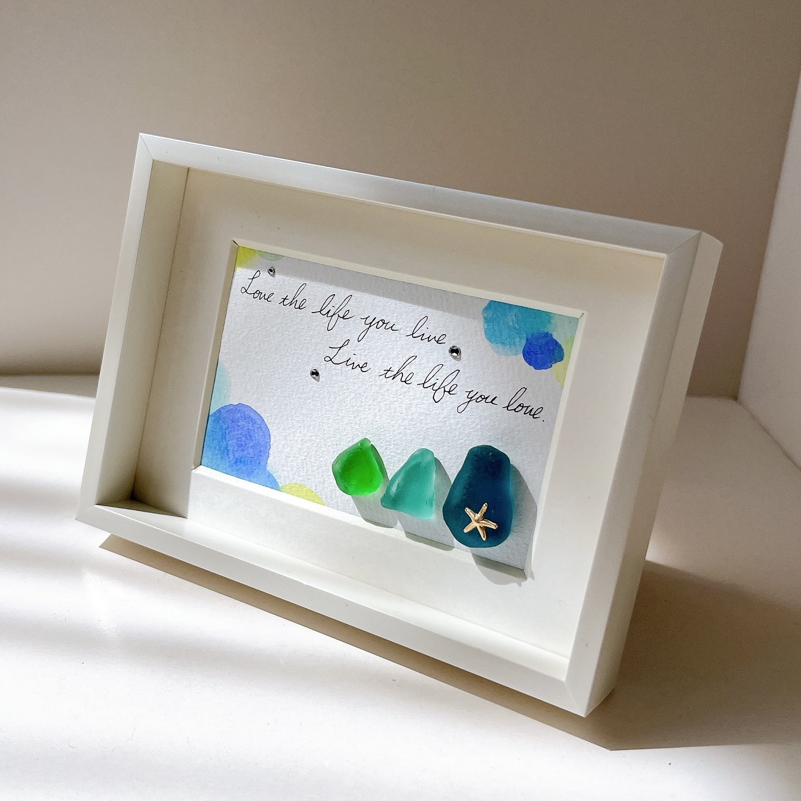 シーグラスと心に響く言葉のアート。